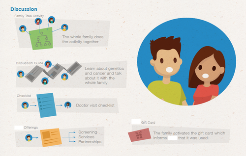 One of the key insights from our research was the behavior of "Practiced Avoidance" when it comes to knowledge about illnesses such as cancer. A key element of our proposed solution was a discussion and activity kit for the entire family that would encourage transparency and reduce the fear of the unknown.